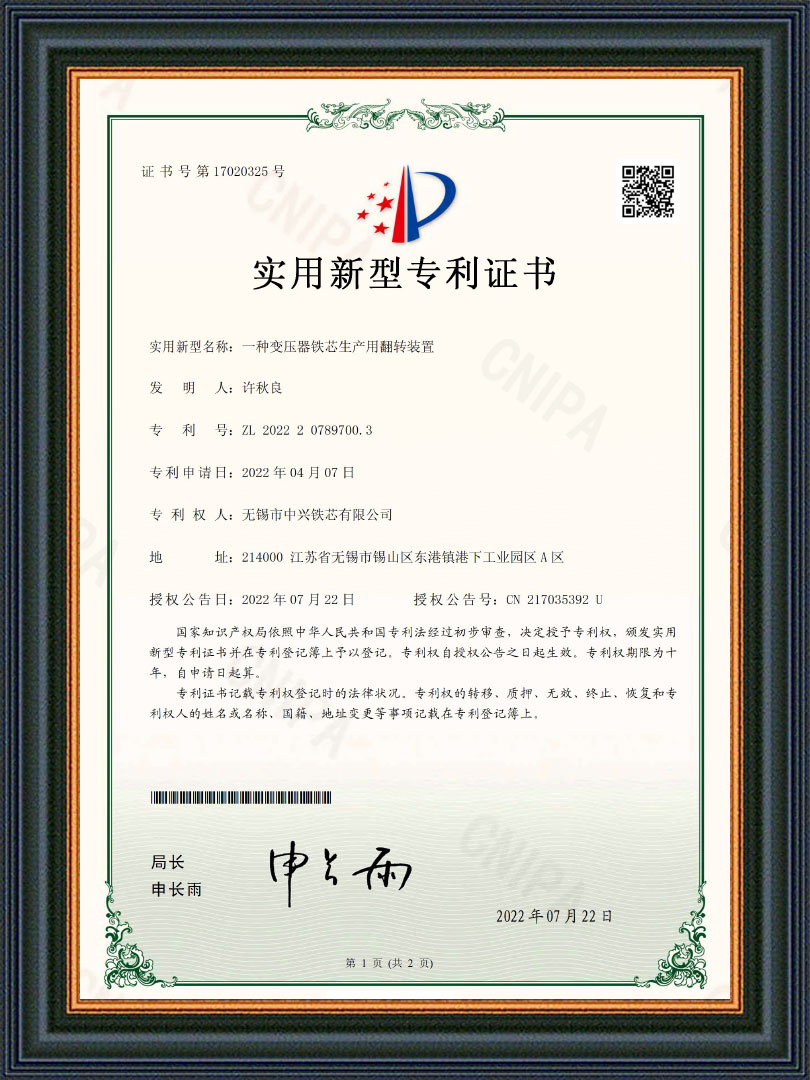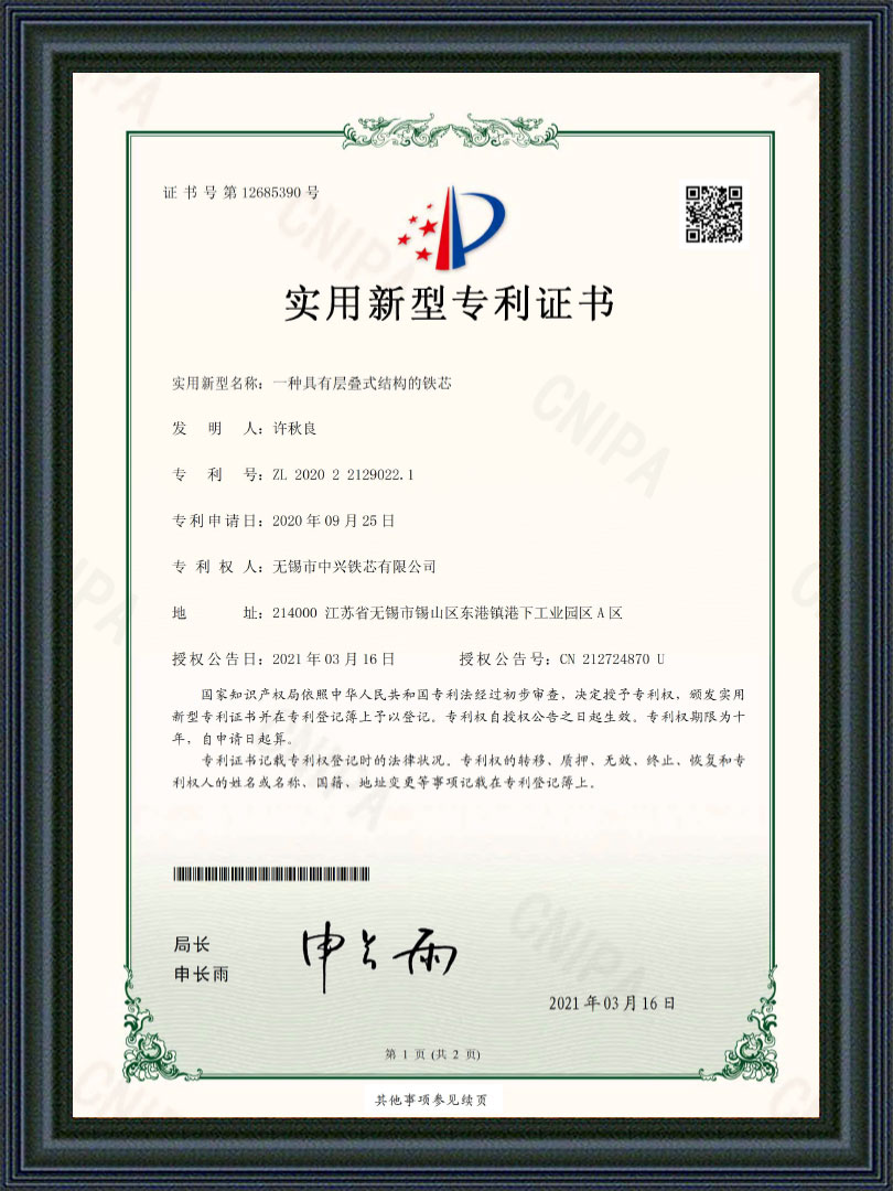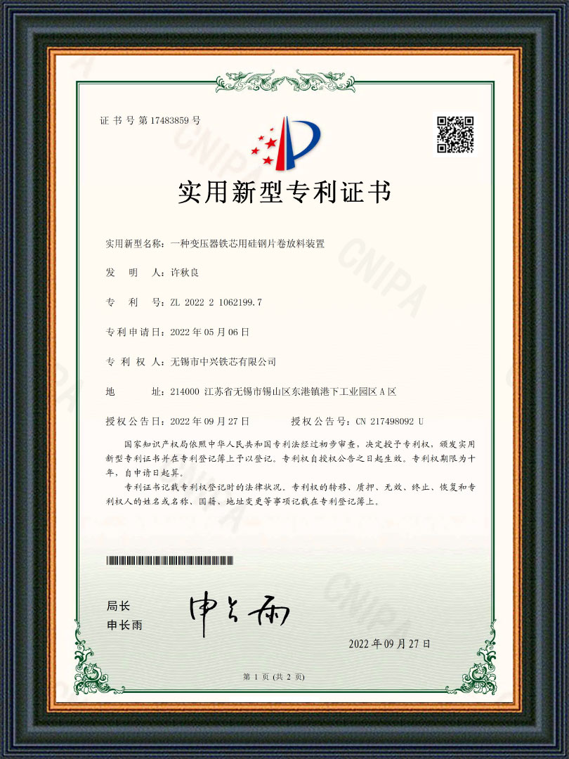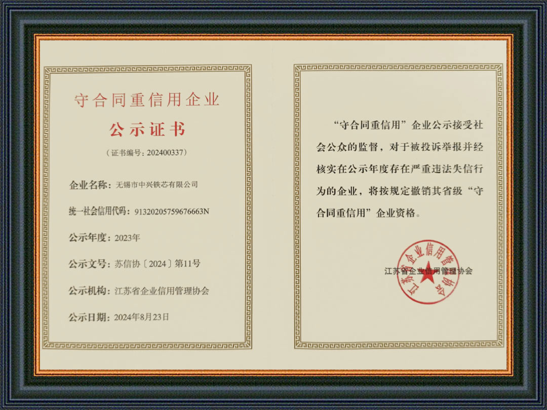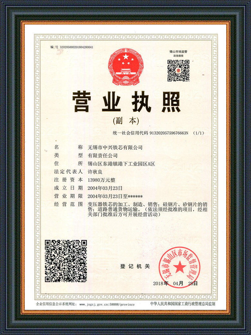 无锡市中兴铁芯有限公司是一家从事干式、油浸式、矿用及特种变压器铁芯等产品研发与制造的公司。始创于2004年,公司坐落在江苏省无锡市东港镇工业园区,占地面积28亩,注册资本13980万,拥有厂房8800平方米,公司采用西安启源纵、横剪生产线18条,硅钢铁芯年产能近3万吨,是国内规模较大铁芯制造商之一,公司被众多变压器厂家评为优质指定铁芯供应商。