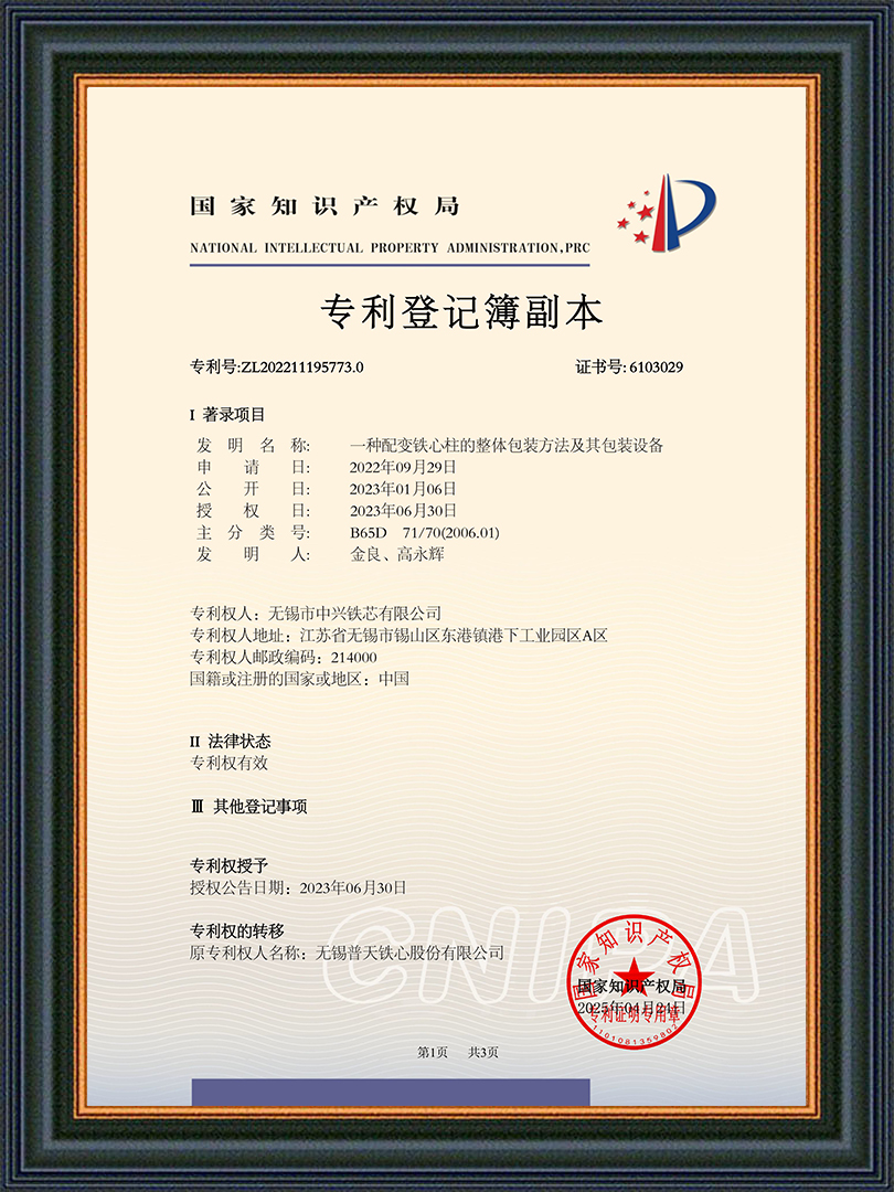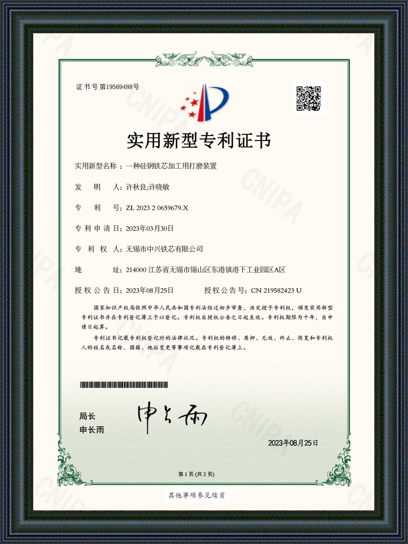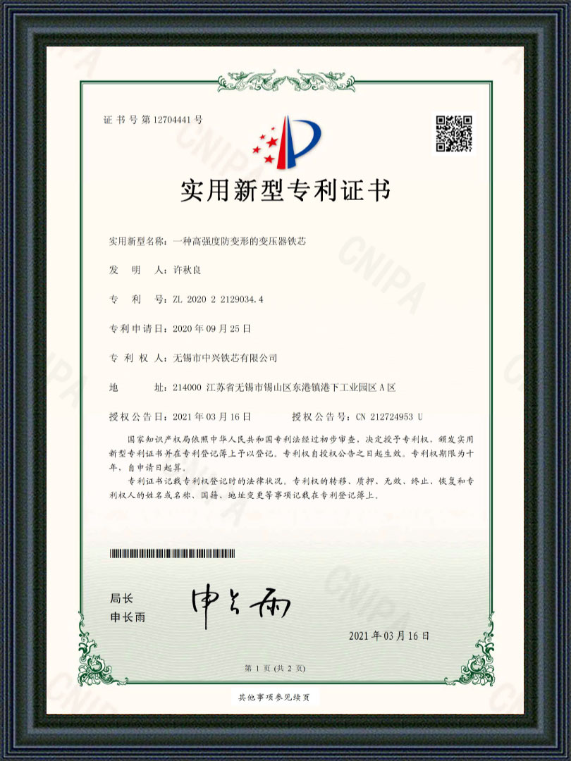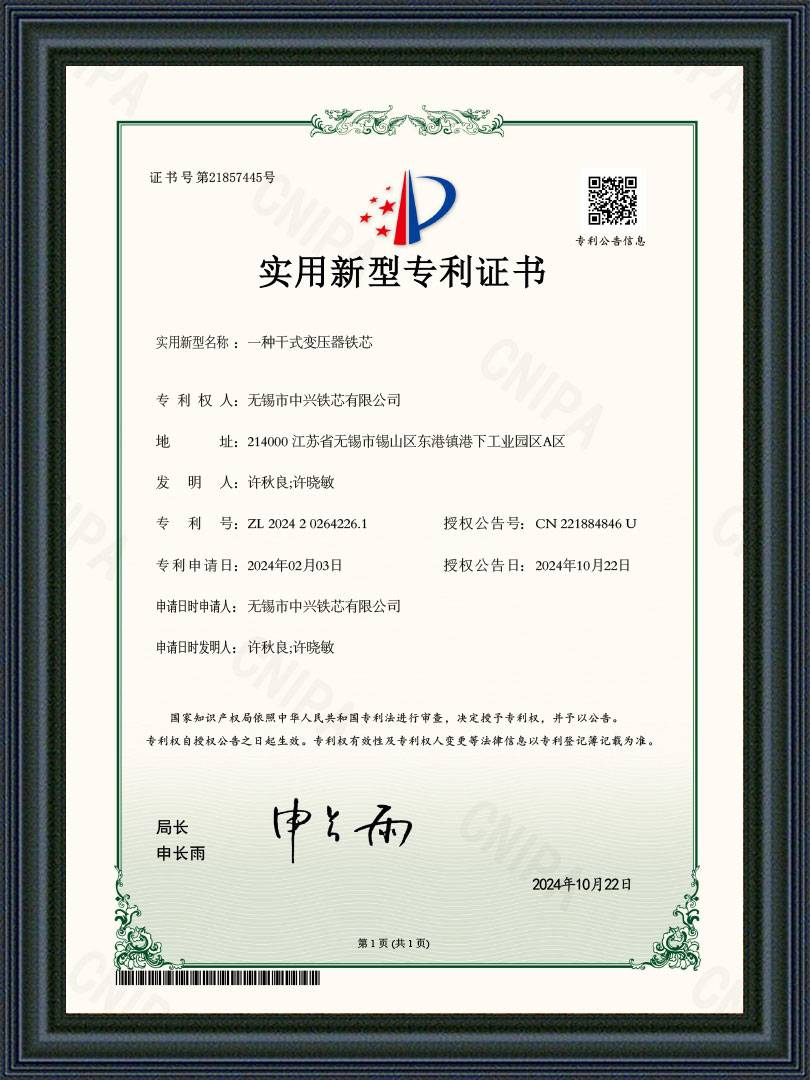 无锡市中兴铁芯有限公司是一家从事干式、油浸式、矿用及特种变压器铁芯等产品研发与制造的公司。始创于2004年,公司坐落在江苏省无锡市东港镇工业园区,占地面积28亩,注册资本13980万,拥有厂房8800平方米,公司采用西安启源纵、横剪生产线18条,硅钢铁芯年产能近3万吨,是国内规模较大铁芯制造商之一,公司被众多变压器厂家评为优质指定铁芯供应商。